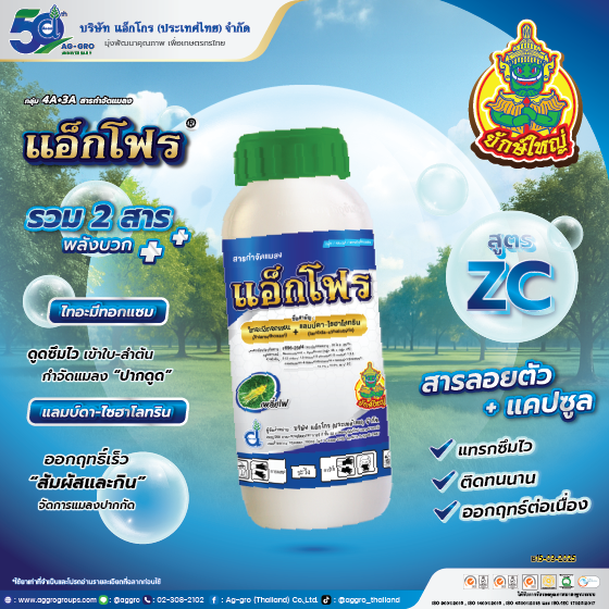 สูตรผสมสาร ZC คือ นวัตกรรมการผลิตสูตรผสมสารกำจัดศัตรูพืชที่ก้าวล้ำ เป็นการรวมคุณสมบัติเด่นของสูตรผสม SC และ CS ทำให้สารออกฤทธิ์คงตัวได้นาน ละลายน้ำได้ดีกว่า ซอกซอนสัมผัสศัตรูพืชในส่วนที่ยากจะเข้าถึงได้ดีกว่าและสามารถคงสภาพบนใบและในพืชได้ยาวนาน /